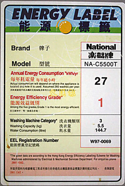 在大型家庭電器上,如冷氣機、雪櫃、洗衣機等用電量都比其他家庭電器較多,故自96年4月開始,機電工程署已推出「能源效益標籤計劃」,希望大家在使用這些電器上,可以達到節約能源的效果,減輕電費。標籤計劃的宗旨是大家在購買產品時,能考慮節能因素,以達到齊齊節約能源的目的。直至06年,標籤計劃已涵蓋18種家庭電器及辦公室器材。舉例說,一部冷氣機需通過一系列的功能測試,方可貼上這標籤。消費者可從這個標籤中獲知該冷氣機型號的耗電量資料,標籤上能源效益級別共分五級,第一級最具效益。安裝甚麼類型的冷氣機,其實要視乎空間的大小,如一間大約200呎的房間,購買一匹的冷氣機已可。