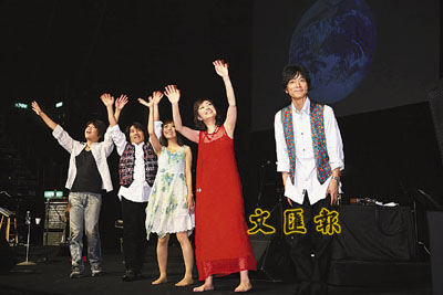 日本靚聲女歌手藤田惠美(紅衣者),香港聽眾對她一定不會陌生,因無論是Le Couple抑或作個人發展,嗓子同樣動聽,所以即使離婚與否也不會改變樂迷對她的感覺。藤田惠美前晚在新伊館舉行Lullaby of Camomile 2008的香港分站演出,唱出很多經典英文金曲之餘還配合歌詞做出手語,讓觀眾聽得如癡如醉;當然還包括她最有名的《溫暖的詩句》。可幸是今次不像9月訪港宣傳時遇上颱風,天氣這麼好她自然唱得更落力啦!■文:魔笛童
