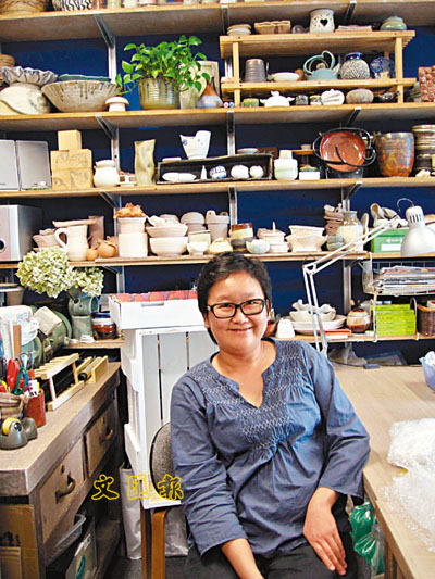走進陶藝家黃美嫻的工作室,對面就是一面牆寬的玻璃窗,隔窗看得到外面喧鬧的銅鑼灣,室內的時間卻像是凝滯住的。一牆的木架放著各種各樣的陶瓷,完成的,未完成的,相映成趣。她打開箱子,在工作台上仔細揭開一層層的泡泡紙,給我看這次將展出的作品。一下子滿桌子都是「麵包」—圓圓的法國麵包拼上油炸鬼和蛋撻,甜甜圈頂著生薑,芝麻十字包黏著牛角包……造型趣怪之餘更像是一桌子的「fusion」菜。