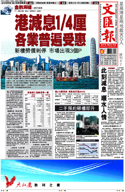 【本報訊】(記者 林德芬、林淑儀)在全球進入減息周期,以及金管局持續推出寬鬆信貸措施及向市場注資推動下,本港銀行終於作出7個月多來的首次減息行動。匯豐昨帶頭下調最優惠利率(P)0.25厘,下周一起生效,除星展、富邦及上商等未有跟隨減息外,其他銀行均跟隨將P調低0.25厘。由於港銀是次減低的是用作釐定各類貸款息率基礎的最優惠利率,故此是次減息受惠層面,除樓宇按揭外,也會擴及至各項工商業貸款,同時還惠及舊客戶,令各類借貸的成本都直接降低,各行各業皆可受惠。有新樓盤更即時剎停劈價。