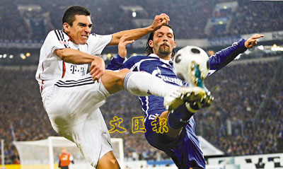 ■史浩克前鋒古蘭爾(右)將再與拜仁中堅盧斯奧交手。 路透社