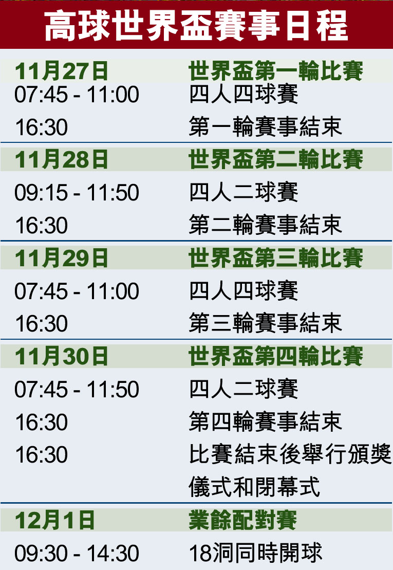 高球世界盃賽事日程 (圖)