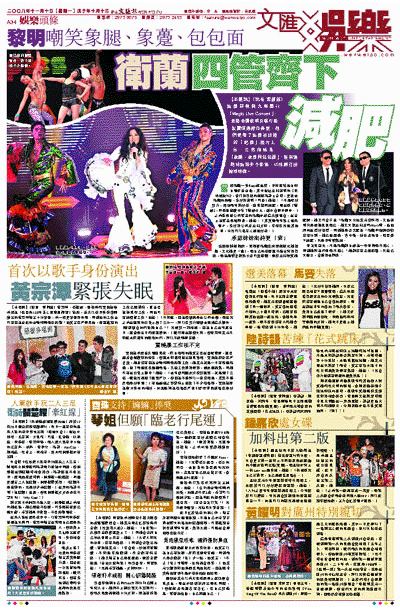 【本報訊】(記者 梁靜儀)衛蘭前晚假九展舉行「Magic Live Concert」,並邀老闆黎明及唱片監製雷頌德擔任嘉賓,他們更帶了衛蘭初出道的「肥蘭」相片上台,公然指她是「象腿、象躉同包包面」,還有連胞妹衛詩亦不客氣,以性感打扮搶姐姐鏡。