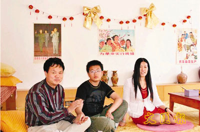 ■劉人島與妻子唐璐、兒子劉小島在北京門頭溝農家小院合影。