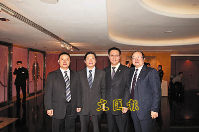 ■重慶市政府赴港招商團成員、重慶市經委主任吳冰(左二),巴南區區委書記李科(右二),長壽區區長周勇(右一),南岸區常務副區長王俊(左一)。 本報記者張蕊 攝