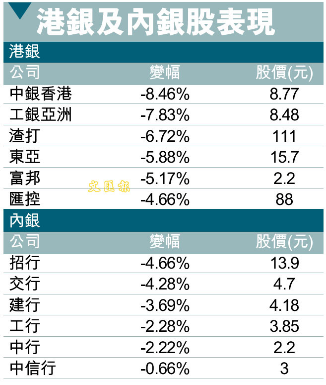 港銀及內銀股表現 (圖)