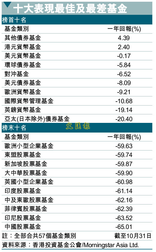 港元債券基金 跌市有斬獲 (圖)