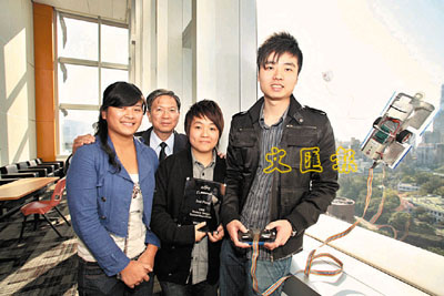 【本報訊】本地大學生發明再次揚威國際,香港理工大學3位機械工程系學生,於日前美國波士頓機械工程師學會主辦的「國際工程學生設計大賽」中,取得全場亞軍。他們的作品為遙控「自動抹窗機械人」,能背著小水箱,在玻璃窗的兩面「抹窗」,創意與實用兼備。