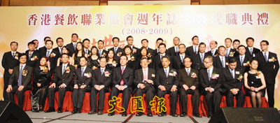 【本報訊】(記者 潘曉平)香港餐飲聯業協會前晚假九龍灣國際展貿中心,舉行2008至2009年度會董就職典禮,邀得政務司司長唐英年蒞臨主禮。典禮上,金融海嘯對飲食業的衝擊成為大會關注焦點。創會主席伍得良稱,預計明年形勢更嚴峻,呼籲同業處理好成本控制和信貸事項。他又告誡會友,大家「不要鬥平」,因為賣血自救根本行不通。籌委主席蘇淥銘則強調,「處變不驚,做好本份」。