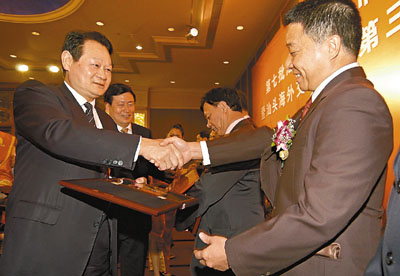 ■汕頭市委書記黃志光、市長蔡宗澤向19位新晉汕頭市榮譽市民頒發金鑰匙和榮譽證書。
