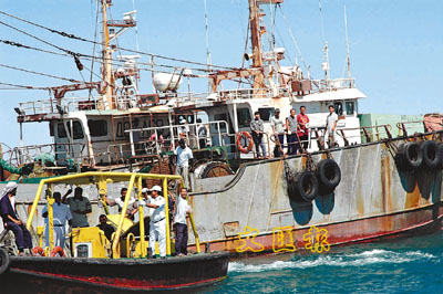 ■07年11月14日, 在索馬里沿海被海盜劫持長達近半年的兩艘韓國漁船獲救,船上有10名中國船員。 資料圖片