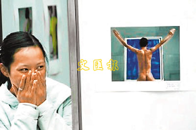 ■重慶師範大學一女生看見同學們自拍的人體藝術照片後,忍俊不禁。 網上圖片