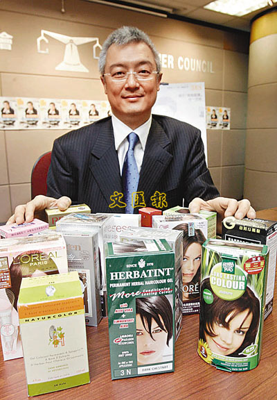 ■何沛謙表示,消委會在市面收集30個染髮劑樣本中,有18個成份標籤未能達到政府規定。