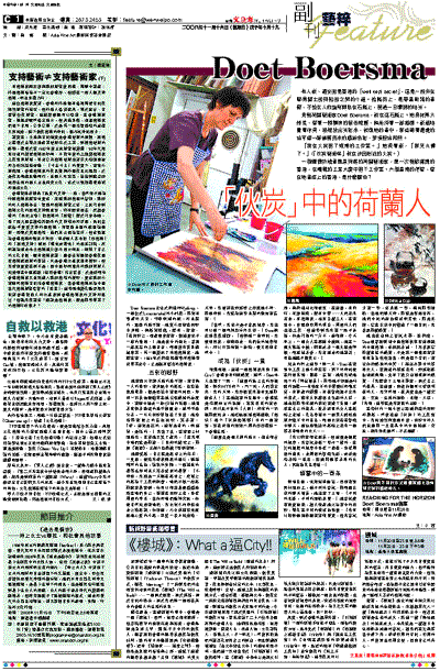 見到荷蘭藝術家Doet Boersma,就在這石階上。她身材高大修長,留著一頭精神的棕色短髮,胸前挎著一部相機。說話時看著你笑,眼裡放出光彩來,就像她的畫中,那些朝著遠處的地平線一路鋪展而來的繽紛色彩,夢境般地和煦。