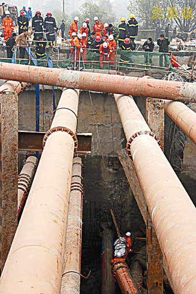 楊國祥介紹,杭州靠近錢塘江,地下水非常豐富,水位偏高,土質以沙層粉土為主,這種土遇水後就像牙膏一樣。施工下挖過程中,兩側圍護牆會承受很大的壓力,流沙地質容易導致基坑坍塌。他個人分析,問題可能出在杭州當地土質、基坑維護設計,以及施工操作這三個方面。