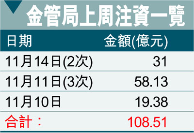 金局上周五兩度注資31億