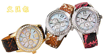 不經不覺Party Season已經迫在眉睫,女士們正趕緊為出席各大小派對四處張羅,務求以最佳的狀態及造型,成為人群中最矚目的焦點。時裝配飾是塑造理想造型的重要元素之一,要配襯Cocktail Dress或晚裝裙,其實不一定要大費周章,只要戴上一枚款式搶眼瑰麗的腕錶,已可達至意想不到的效果。適逢聖誕佳節,國際時尚腕錶品牌GUESS Watches特別推出全新Muse Python系列,迎合時裝界大熱的ExoticLeather皮革熱,以華貴的蛇紋壓皮搭配閃爍迷人的晶石,再加上流行的色彩元素,為妳的秋冬造型增添奢華尊貴的感覺,盡顯時尚又不落俗套。