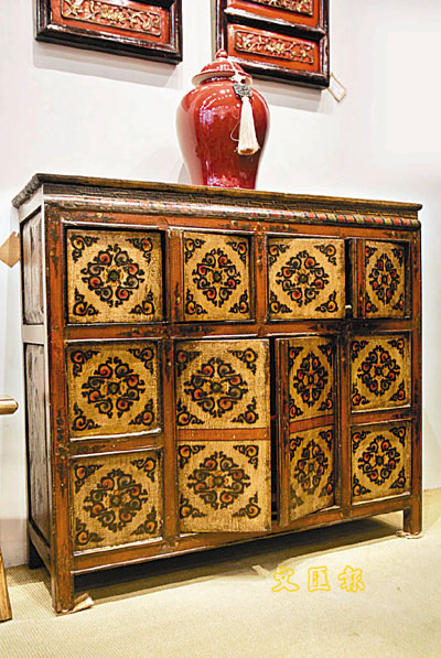 古董傢俬不一定沉實單調,這個出產自西藏的儲物櫃就是一個好例子。工整的花紋圖案,加上櫃邊四周細緻的紋飾,正好說明古董傢俬不一定與單調畫上等號。售價:$6,000
