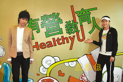 【本報訊】(記者 梁靜儀)古巨基(圖左)與中國奧運女子網球雙打銅牌運動員晏紫,昨日出席於大埔香港教育學院舉行的「有《營》教育人」Healthy U」活動,席上兩人更被獲委任為「文理學院大使」。基仔表示昨日才首次與晏紫見面,又稱覺得對方的名字好靚。問到平日可有注意飲食生活?基仔稱本身沒有偏食,但也沒有特別注重營養,幸好之前做身體檢查時,一切正常。基仔又稱主持了《係咪小兒科》節目後,多了很多小朋友fans,見到他都會叫他做「古sir」。不過他從沒想過當老師,因十九歲便入行做藝員,反而有想過將來退休後開教室教小朋友畫畫。
