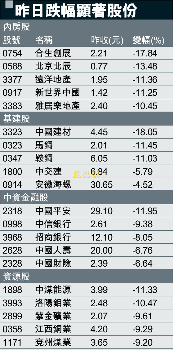昨日跌幅顯著股份