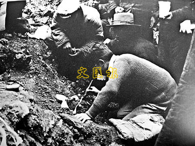1936年11月15日至26日的11日中,賈蘭坡接連發現3個「北京人」頭蓋骨。這是11月26日發現第3個「北京人」頭蓋骨時的情景。