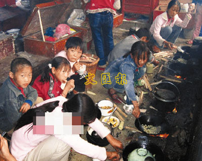 「看著孩子們在笑,我卻心酸、揪心得想哭!」近日網友「鍋爐工」在紅網論壇發帖爆料,稱在網上知名社區論壇看到一組《山區小學寄宿生的「自助餐」》的照片,發帖人說「這是去年中秋佳節頭一天,我參與體檢組深入雲南大理西部高寒山區漕澗鎮的新勝完小,為學生體檢時抓拍的」,場面令許多網友心酸、感動,並跟帖勉勵照片中的小學生或回憶自己類似的童年。