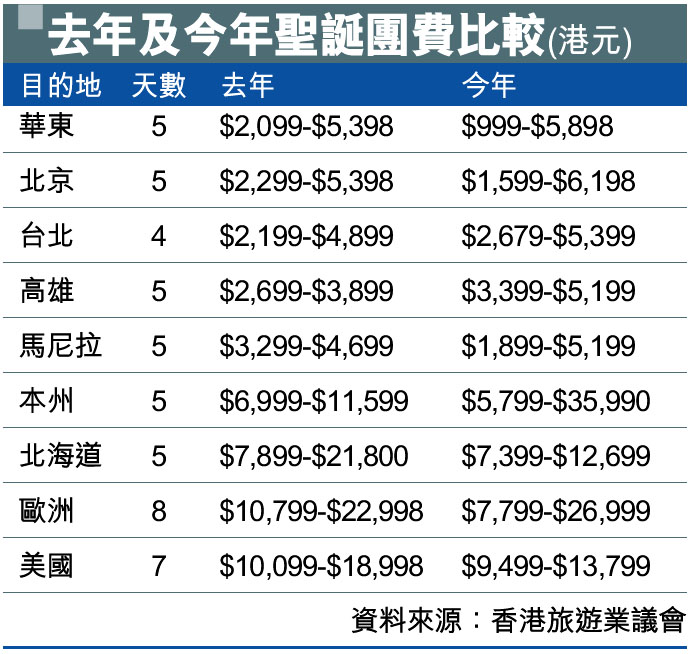 聖誕降團費吸客 旅界料收入減1成 (圖)