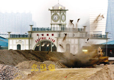 至昨午5時22分,爆炸品處理組人員將炮彈移到地盤近海滿是沙丘的位置,並將通往新天星碼頭的行人天橋暫時封閉。自第一度引爆炮彈傳出「轟隆」巨響,10多個沙包被彈上半空,但炮彈的引爆器仍未完全摧毀,13分鐘後需第2度引爆,終將炮彈完全銷毀。