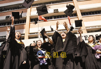 ■樹仁大學昨舉行第34屆畢業典禮,應屆畢業生共1,073人,當中有16名優異生獲取各課程中的最優異成績獎。 本報記者劉國權 攝