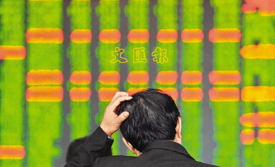 ■滬深股市昨雙雙下挫,跌幅逾3.6%,上證綜指連續三個交易日下跌,再度失守1,900點。股民在電子報價板前大感「頭痛」。 新華社