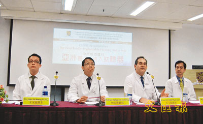 中大醫學院耳鼻咽喉─頭頸外科學系今年2月至6月,成功為3名(其中一名為內地人)35歲至56歲,因先天性聽覺神經退化或患上慢性中耳炎等疾病,致中度至嚴重聽力損失的病人進行全植入助聽器手術,成功為病人恢復98至99%聽覺,情況較佩戴傳統助聽器理想,聽到的音質更為自然。