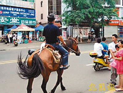 ■今年夏天,海南省海口市一市民在大街騎馬,引發爭議。 網上圖片