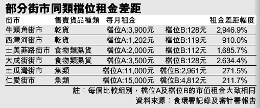 部分街市同類檔位租金差距