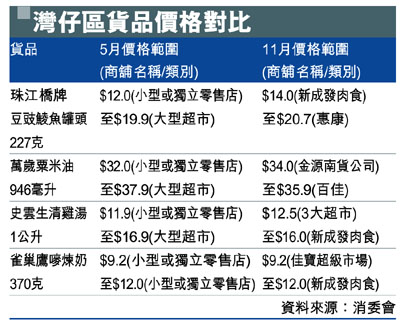 灣仔區貨品價格對比 (圖)