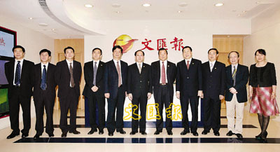 ■北京市副市長苟仲文一行到訪本報,獲社長張國良、副社長王樹成、總編輯王伯遙、總經理顧行偉等報社領導熱烈接待。 本報記者潘達文 攝