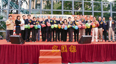 ■陳守仁、駱志鴻、蘇千墅與蔡素玉、許清安 、洪連杉、黃建彬等主持「歡樂金秋嘉年華」剪綵。