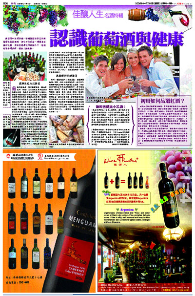葡萄酒對癌症、冠狀動脈疾病、腦血管意外(中風)三大致死疾病的治療有積極的作用。葡萄酒中的單寧酸可以降低人體血液中動物脂肪分解出的脂質,色素等酚類物質具有抗氧化延緩衰老的作用。葡萄酒中蘊藏豐富的維他命,為人體提高免疫力,增強抗感冒的能力。對於人體來說,必須的氨基酸有26種,而人體內只能合成其中的一部分,另一部分在人體內不能合成,或者合成速度不能滿足人體需要,這類氨基酸必須有天然的食物供給。這部分氨基酸被稱為「必需氨基酸」,總共有8種,無論在葡萄或葡萄酒中,都含有這8種「必需氨基酸」,這是任何水果和飲料都無法與之相比的。