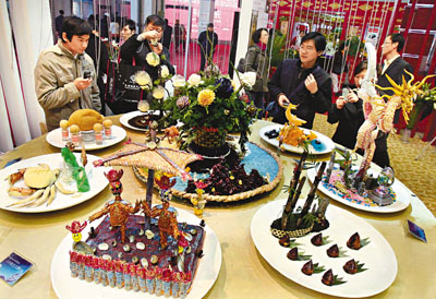 28日,在上海光大會展中心舉行的「第九屆中國美食節」之「中國名菜名點名宴小吃展示」活動中,數十家中華飲食名店的特色名菜及各地特色小吃悉數亮相,展現了中華飲食的獨特魅力。圖為觀眾在參觀寧波風味的特色名宴。新華社