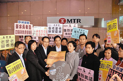 ■民建聯昨組織40多人到港鐵總部請願,要求港鐵將長者假日兩元優惠計劃定為永久性優惠。