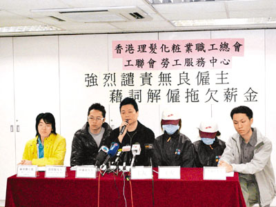 ■理髮化妝業職工總會指於金融海嘯衝擊下,上月已有12間髮型屋結業,倘結業數字續增,僱主欠薪及剝削僱員的情況會日趨嚴重。 本報記者鄭啟源 攝