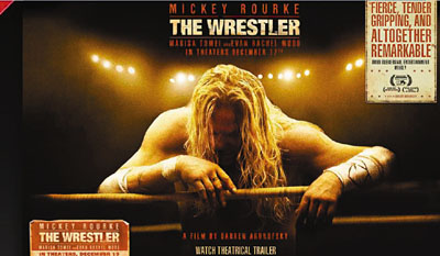 美國摔角雖然已變成「一台戲的鬧劇」,但在導演的銳利鏡頭運用及畫面操控之下,我們在Trailer上看到Randy要戴上助聽器跟女兒說話、要去打散工卻遭人唾棄……再眼見我們差點認不出來/deform及滿身傷痕的軀殼(像譚家明說在《父子》裡郭富城被打後一樣),耳際響著波士的吟唱就令整個Randy已活現出來!電影原創音樂由導演多年拍檔Clint Mansell負責(據聞還有前Guns N' Roses、Velvet Revolver結他手助陣),而這首《The Wrestler》卻姍姍來遲使得該片在威尼斯影展要延後播放,導演誓要等到波士出場(雖然是片尾)卻絕對沒有浪費時間。有興趣收聽主題曲及了解更多有關本片的讀者,可以瀏覽《The Wrestler》的電影官網:http://www.foxsearchlight.com/thewrestler/