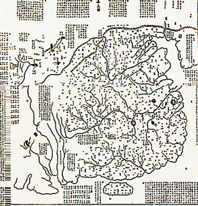 以上故事荒誕不經,收錄在《太平廣記》第74卷。對這篇文章來說,陳季卿是否實有其人並不重要,他乘坐竹葉在地圖上旅行是否有科學依據也無需論證,要緊的是故事裡那幅地圖。