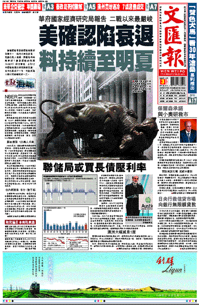 儘管經濟學家對經濟衰退的定義不一,但可以肯定的是,美國已陷入衰退,問題是何時展開的?國家經濟研究局(NBER)前日宣告,去年12月經濟衰退已悄然降臨美國,至今已維持了一年,可能成為二戰以來最嚴峻的一次。