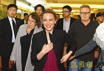 ¡@¶¶§Q§¹¦¨¥_¨Ê¤À¯¸«á¡A¿D¬w¤Ñ¦ZKylie Minogue(¹Ï¤¤)¦bªð¦^¯ª®a´À¥þ²y¨µºt¸¨¹õ¤§«e¡A©ó«e¤Ñ©è¹F¥xÆW·Ç³Æ·í¦aªººt°Û·|¡C©Î³\¨ü¨ì©¾¤ßºq°gªº¼ö±¡´Á«Ý¡AKylie¤£³æ°ª¿³±o®iÅSµL¤ñ¯º®e¡A¤]¦V±µ¾÷¤H¤hñ¦W¯d©À¡A¤ñ°_¦o¦b»´ä¾÷³õ®ÉÅãµM®e¥ú·Øµo±o¦h¡AªGµMFans«Â¤O¤£¯à©¿µø¡C¡½¤å¡G«¢¼Ö¡þ¹Ï¡G¤¤¥¡ªÀ