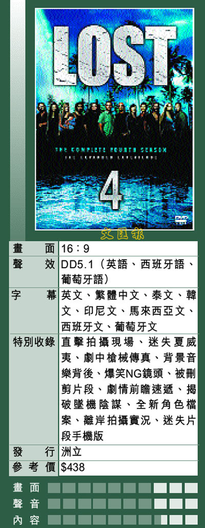 第四季解開了部分謎團,卻又埋下更多的謎。然而片中的哲學、科學等的思考也愈來愈多,無可疑問的,當《Heroes》愈來愈惡俗的時候,《Lost》已展示其嘗試描繪出宇宙運行規則及人類命運的野心。
