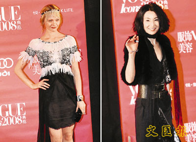 時尚品牌VOGUE周年慶典日前在北京舉行。當晚的紅地毯可謂星光熠熠,除了杜鵑、中田英壽、高圓圓、羽壇金童玉女林丹、謝杏芳前來捧場外,Kate Moss(左)、張曼玉(右)和梁詠琪等星謀殺了不少菲林。當作為壓軸出場的Maggie穿上一襲黑色晚裝出場時,其一貫優雅和淡定的微笑成為全場焦點。相反與Maggie穿上相反格調顏色的Gigi,則顯得更加高挑清麗。 ■文:曼迪/圖︰中通社