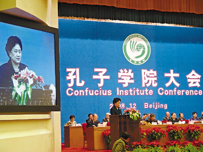 中共中央政治局委員、國務委員劉延東出席該會並作主旨演講,她稱讚孔子學院創辦4年來,已初步建立起以孔子學院為骨幹的國際性漢語教學體系。目前,在78個國家與地區共建立了249所孔子學院與56所孔子課堂,且其中9成以上均為中外大學合辦,有利於教育的交流。據悉,全球孔子學院08年共投入9,300多萬美元資金,中外雙方的投入各佔48%和52%。目前尚有40多所孔子學院的開辦申請正待批核。
