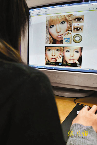 ■消費者如在網上自行購買不適合自己的「大眼仔」或會導致眼睛不適,最嚴重可致盲。 本報記者潘達文 攝
