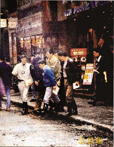 ■涉於97年策劃香港史上最嚴重的尖沙咀寶勒巷新一代卡拉OK縱火案主謀蔡錦輝,潛逃近12年終在深圳落網。圖為警方當日在現場帶走一名男子助查。資料圖片