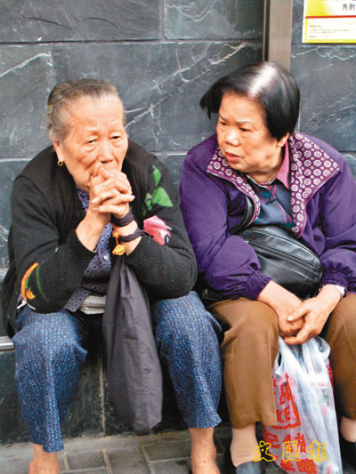 ■排頭位的87歲關婆婆(左)早上11時許已到場等候,她指1元一盒飯十分抵買,即使等4小時也值得。本報記者嚴敏慧攝